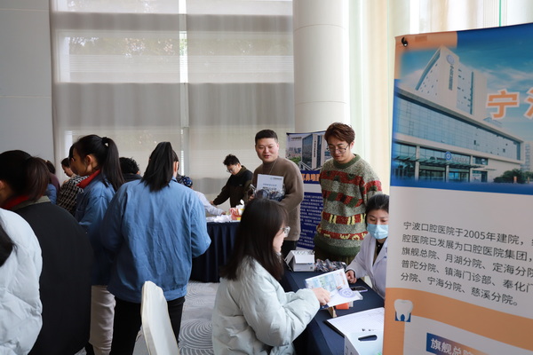 At the free clinic event, doctors from Ningbo Ear, Nose and Throat Hospital, Ningbo Stomatological Hospital, and Guoyitang gathered in the administrative building. They dressed in white coats, carefully examined the employees who came for physical examinations, and then patiently answered everyone's doubts, dutifully safeguarding the health of every employee who came for examination. At the clinic of the Department of Otolaryngology, they patiently and meticulously examine the employees' ear canals, nasal cavities, and throat, not overlooking any potential health hazards. Dentists hold professional tools to conduct oral examinations for employees and promote oral health knowledge.